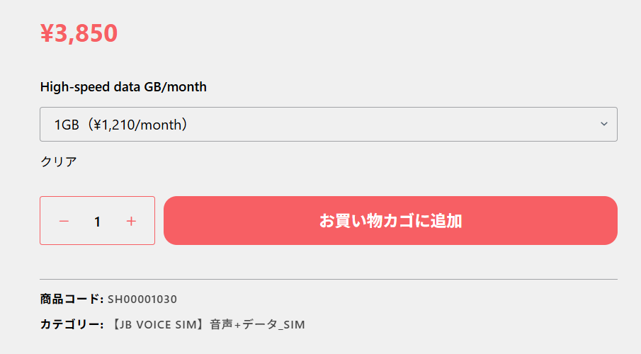 JB Mobile 온라인스토어(https://jbmobile.jp/product-category/jbvoice-jp/)에 접속해 본인에게 맞는 요금제를 선택합니다.