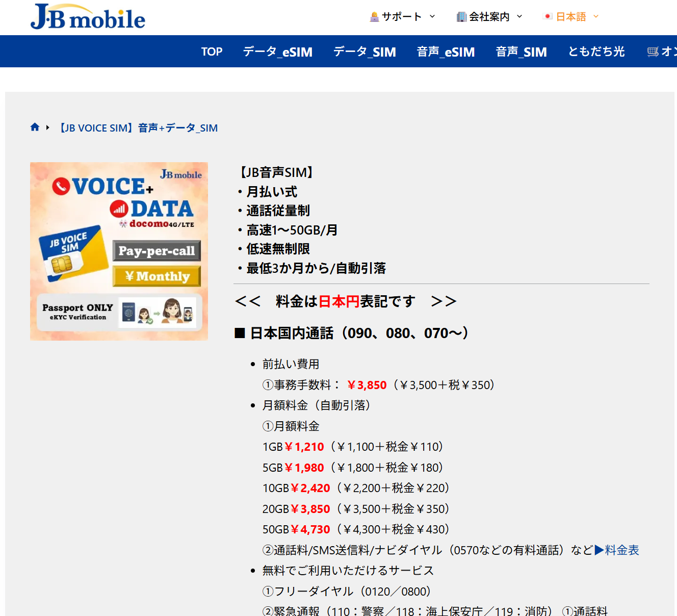 → 직접 들어가는 상품 페이지는 여기 클릭 : https://jbmobile.jp/product/jbvoicesimauto/