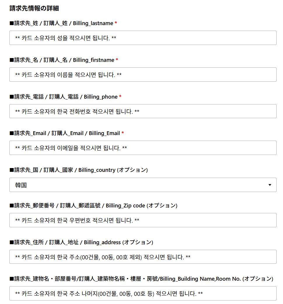 - 한국에서 받을 주소를 알려줘야 하고
