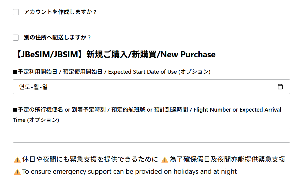아래 2개는 도착 예정일인데 옵션이므로 저는 날짜는 신청하는 날부터 1주일 뒤(임의로 적음), 편명은 적지 않았습니다.