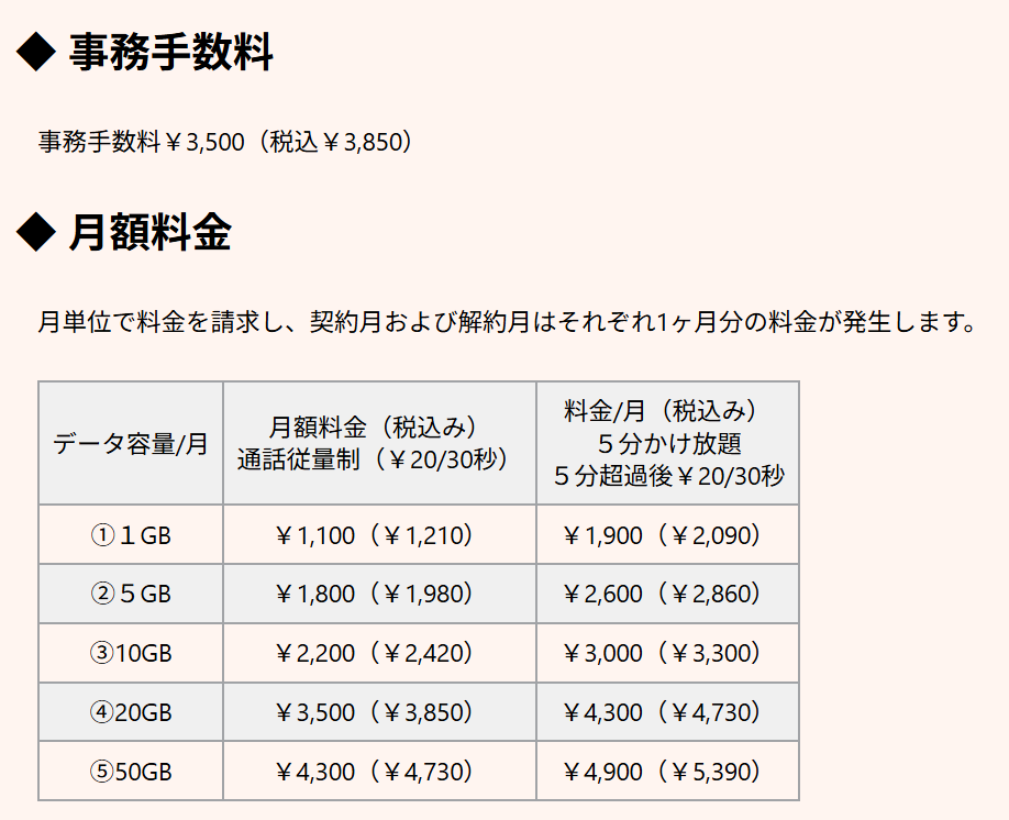 - 월간 이용료 : 데이터 1GB 기준 세후 1,210엔